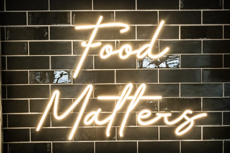 金屬燈泡邊框字混搭軟霓虹燈的文創招牌。