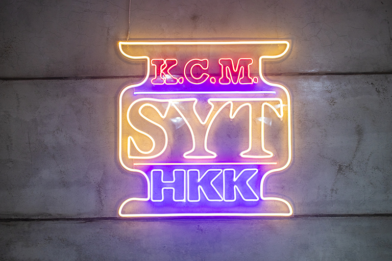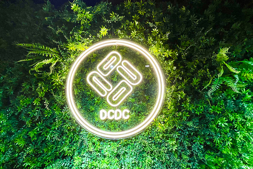 水泥柱上的外框裁型軟霓虹燈,呈現出立體感十足的光影風格,並少了多餘的壓克力反光,拍照打卡的效果好。