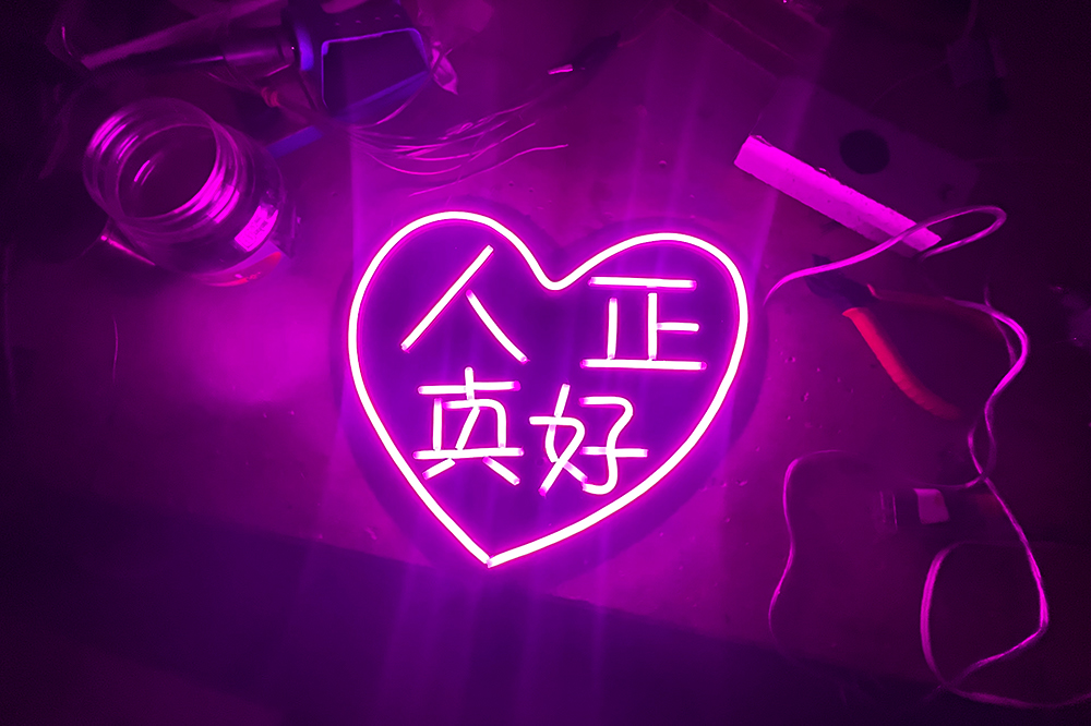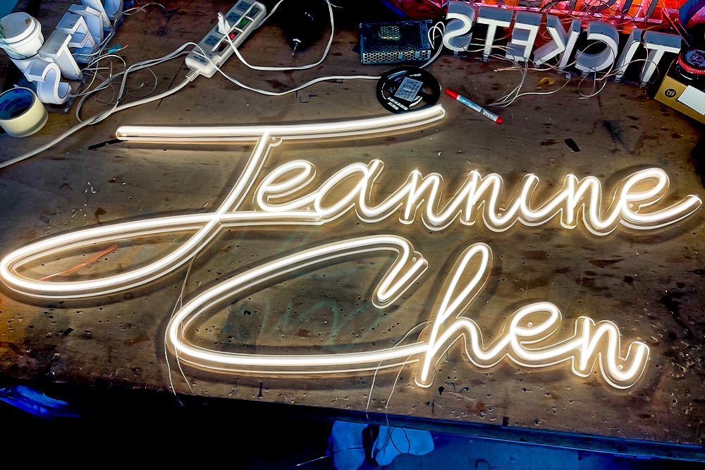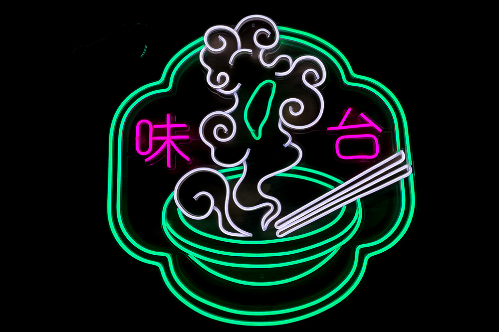 外框裁型軟霓虹燈,呈現出立體感十足的光影風格,並少了多餘的壓克力反光,拍照打卡的效果好。
